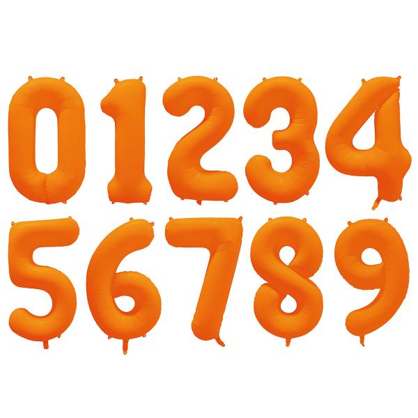Detaljer i neon framhäver ballongen i en klar orange ton. Denna sifferballong tydliggör firandet genom att visa den valda siffran. Den fungerar som en stämningshöjande födelsedagsballong vid dukningen och gör sig bra på bild.