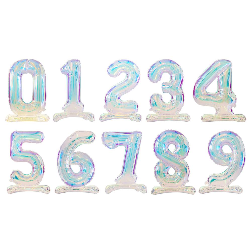 Sifferballong Skimrande Stående 72 cm är en folieballong i form av en regnbågsskimrande siffra som fylls med luft med det medföljande blåsröret. Helium behövs ej, eftersom denna sifferballong står upp ändå.