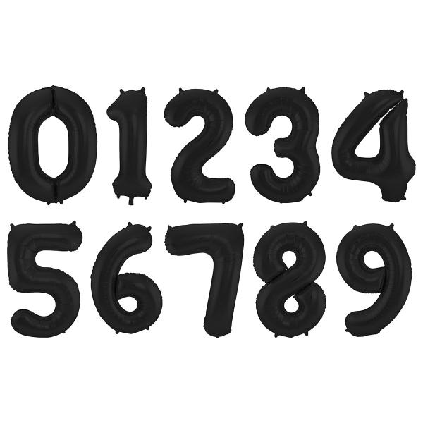 Sifferballong Svart Matt Metallic är en folieballong formad som en siffra i en matt metallicsvart nyans.