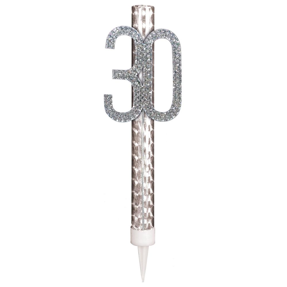 Silver Isfackla med Siffran 30 är en isfackla med holografisk silverfärg och siffran 30, dekorerad med silverfärgade strass.