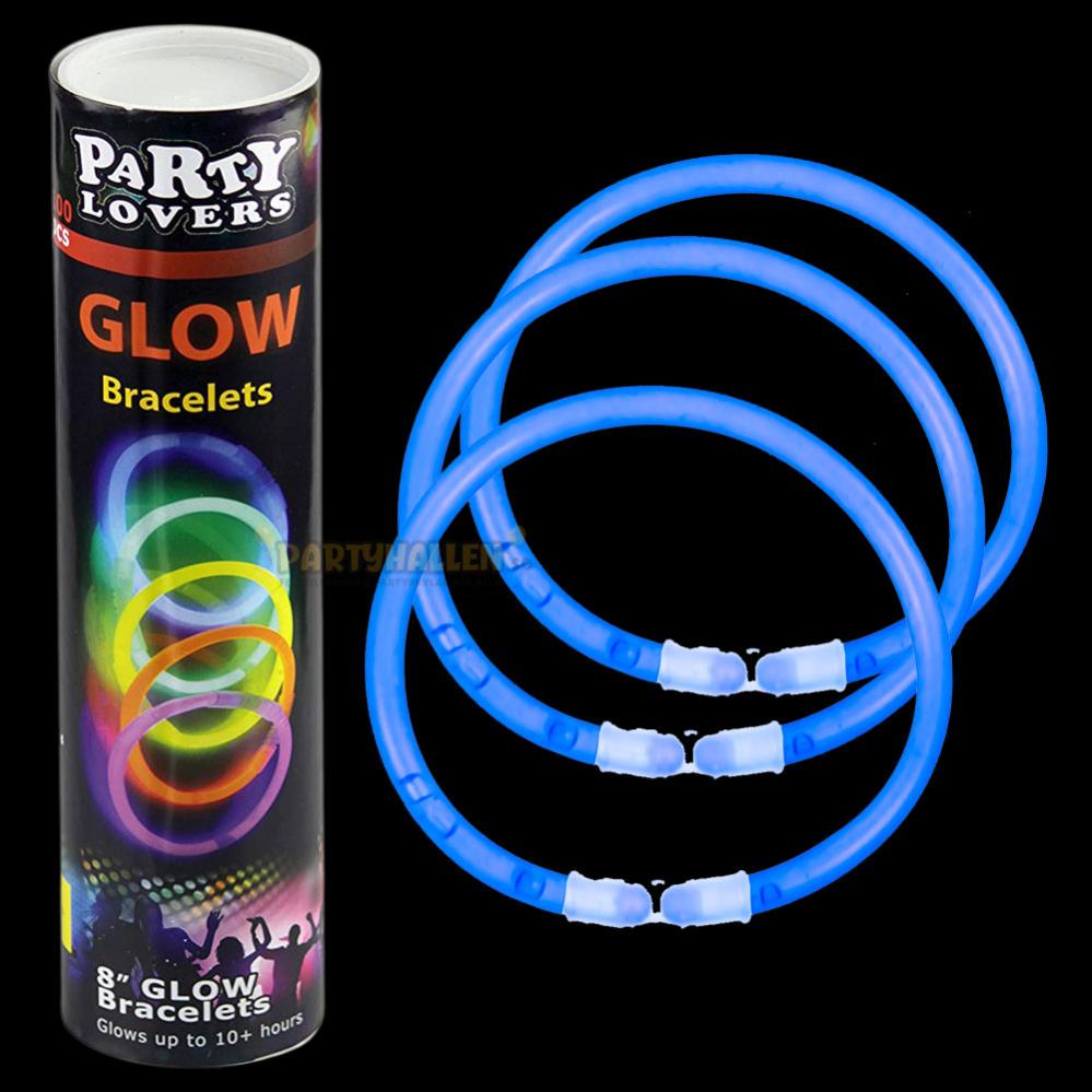 Självlysande Armband Blå omfattar ett 100-pack självlysande armband i blått. Armbanden aktiveras genom en enkel böjning och lyser i ca åtta timmar. Armbanden är ca 20 cm långa.