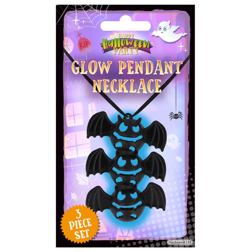 Självlysande Fladdermus Halsband omfattar en förpackning med ett självlysande halsband i form av tre fladdermöss samt en glowstick. Man aktiverar enkelt glowsticken genom att böja, vifta eller skaka den för att sedan placera den i smycket.
