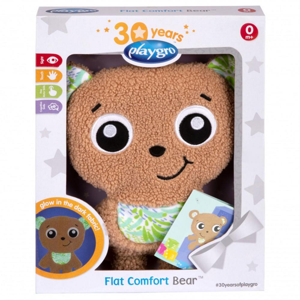 Självlysande Nallebjörn Brun omfattar en brun nallebjörn med självlysande delar som lyser i mörkret och en fyrsidig bildsaga.