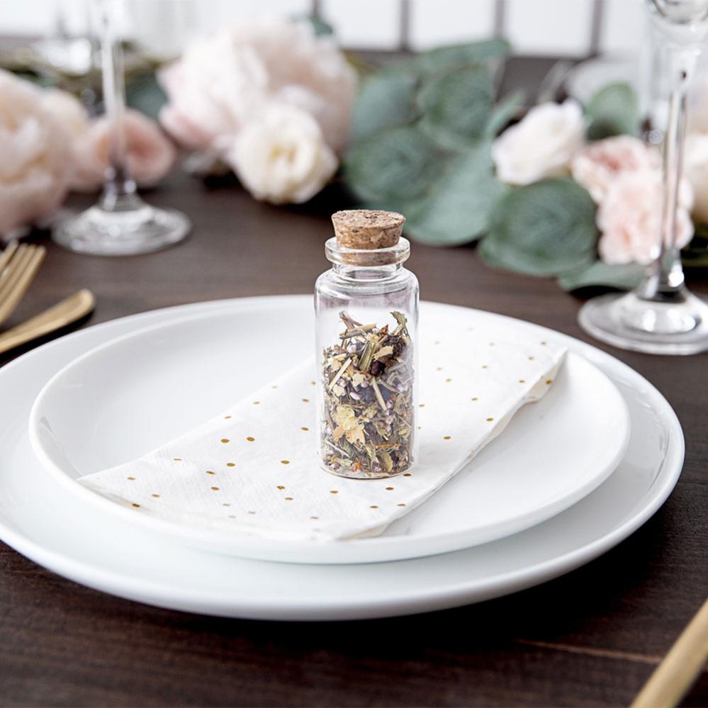 Fina små glasflaskor med kork som blir en dekorativ detalj till festen. Fyll dem med något passande och placera dem snyggt på bordet för en enkel och riktigt fin bordsdekoration. Passande glasflaskor till många olika kalas och fester.