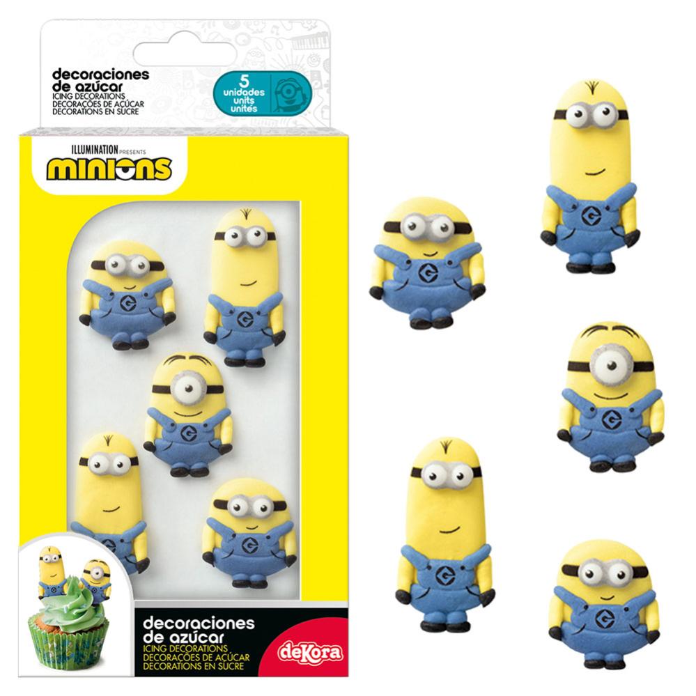 Sockerdekorationer Minions omfattar 5 st ätbara sockerdekorationer i form av olika Minioner. Dekorationerna är ca 4 - 5,5 cm långa och passar till flera olika bakelser så som tårtor, cupcakes, muffins, kakor m.m. Fri från gluten.