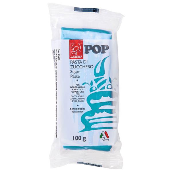 Sockerpasta Turkosblå innehåller 100 gram turkosblå sockerpasta som är klar att användas direkt ur förpackningen. Utmärkt sockerpasta att använda till tårtdekorationer, cupcakes och andra bakverk.