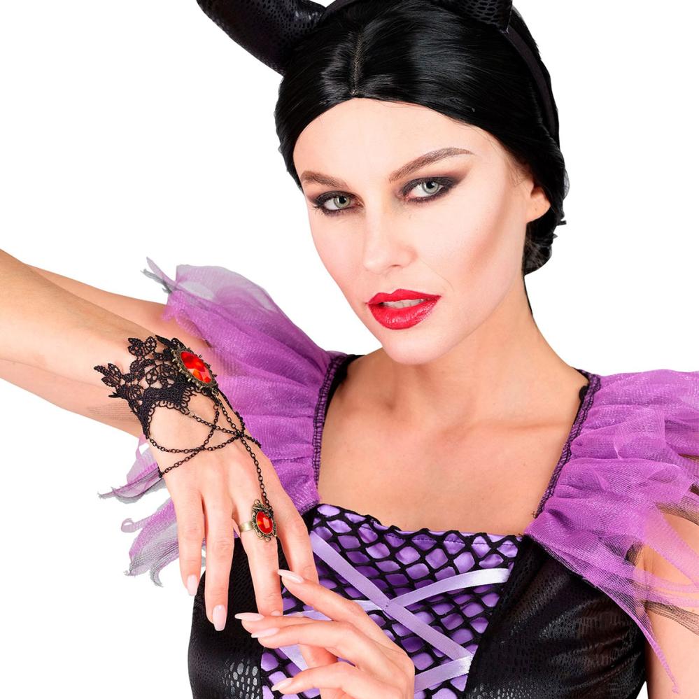 För maskerad och halloween passar ett armband, gärna med en dekorativ ring, som lyfter din utklädnad och känns skönt på handleden. Detta spetsarmband är mjukt, justerbart och bekvämt för lång användning under kvällen.