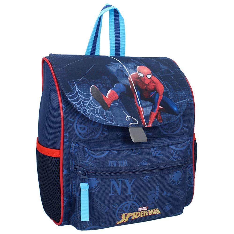 Spiderman Ryggsäck Barn School Time omfattar en liten, mörkblå Ryggsäck med röda och ljusblå detaljer samt ett snyggt motiv av Spider-Man på framsidan. Ryggsäcken har ett huvudfack, ett ytterfack, två nätfack på sidorna samt vadderade och justerbara axelband.
