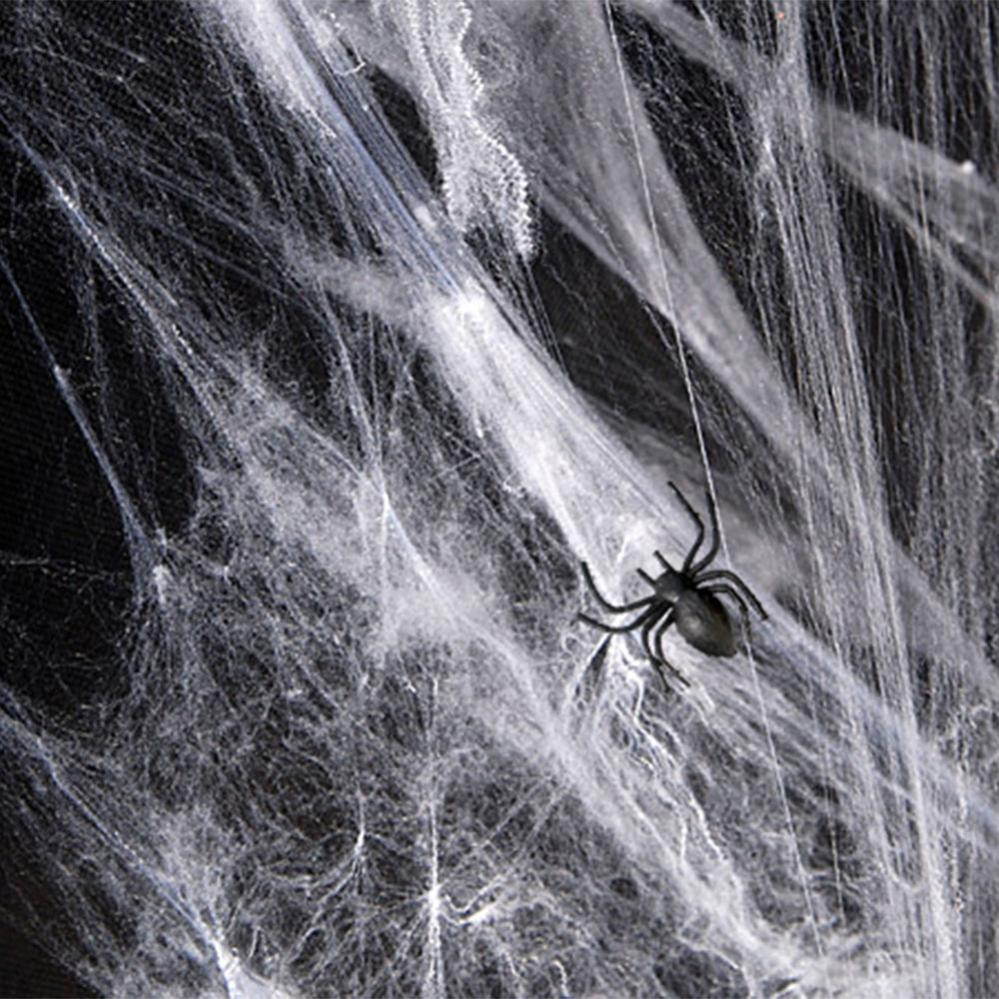 För en ryslig halloween dekoration, prova ett stretchigt spindelnät med små svarta spindlar. Perfekt för att skapa en kuslig stämning som får gästerna att rysa. Perfekt för att förvandla vilket rum som helst.