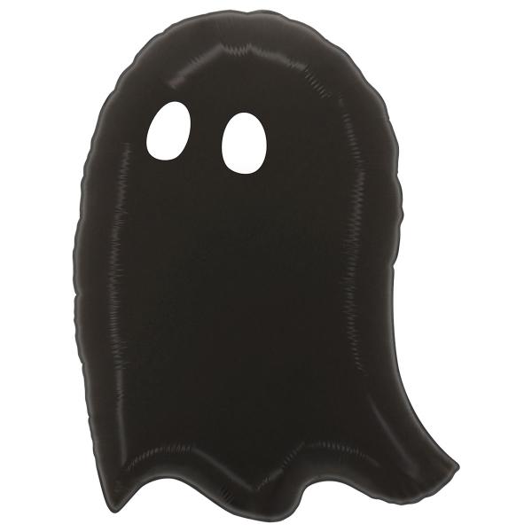 Spöke Folieballong Svart är en folieballong i form av ett svart spöke med vita ögon.