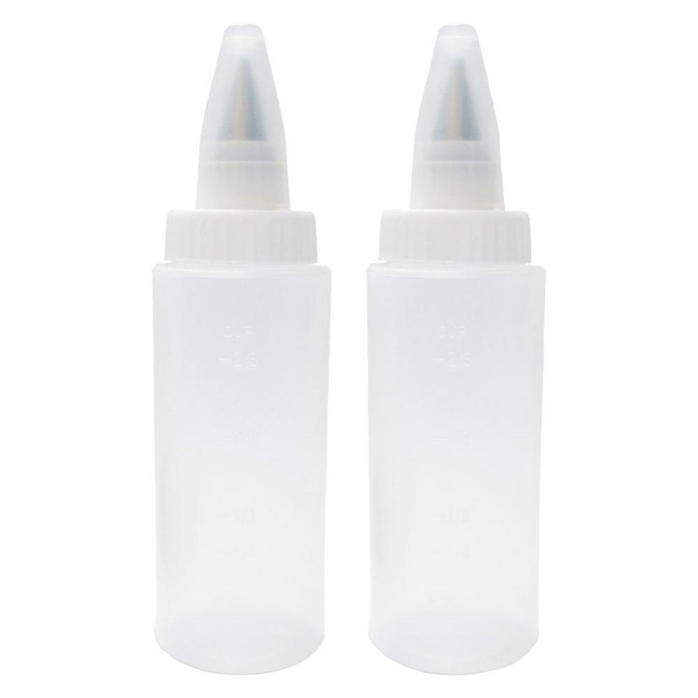 Spritsflaskor omfattar två spritsflaskor i livsmedelssäker plast med varsin spritstyll i rostfritt stål. Flaskorna rymmer ca 185 ml och storleken på spritstyllen är ca 2 respektive 4 mm i diameter. Fyll med glasyr för att dekorera dina kakor.