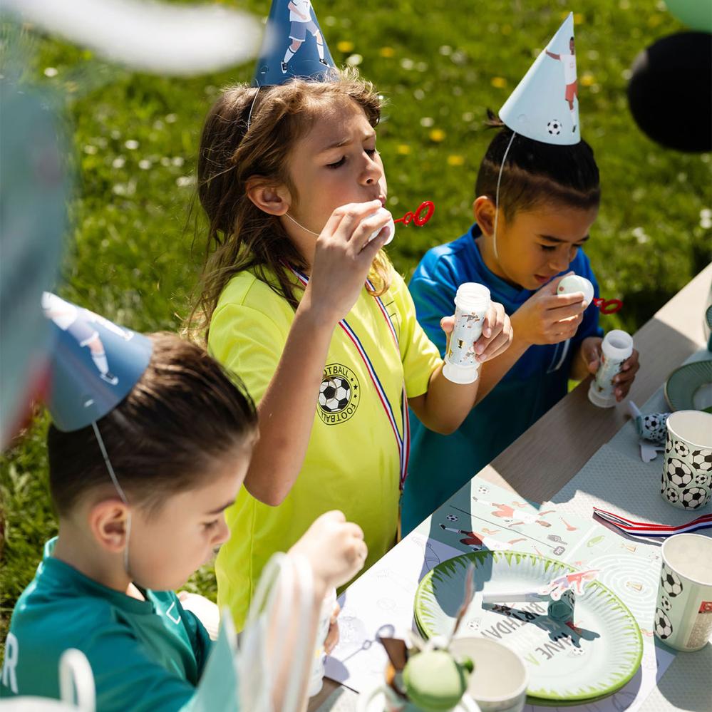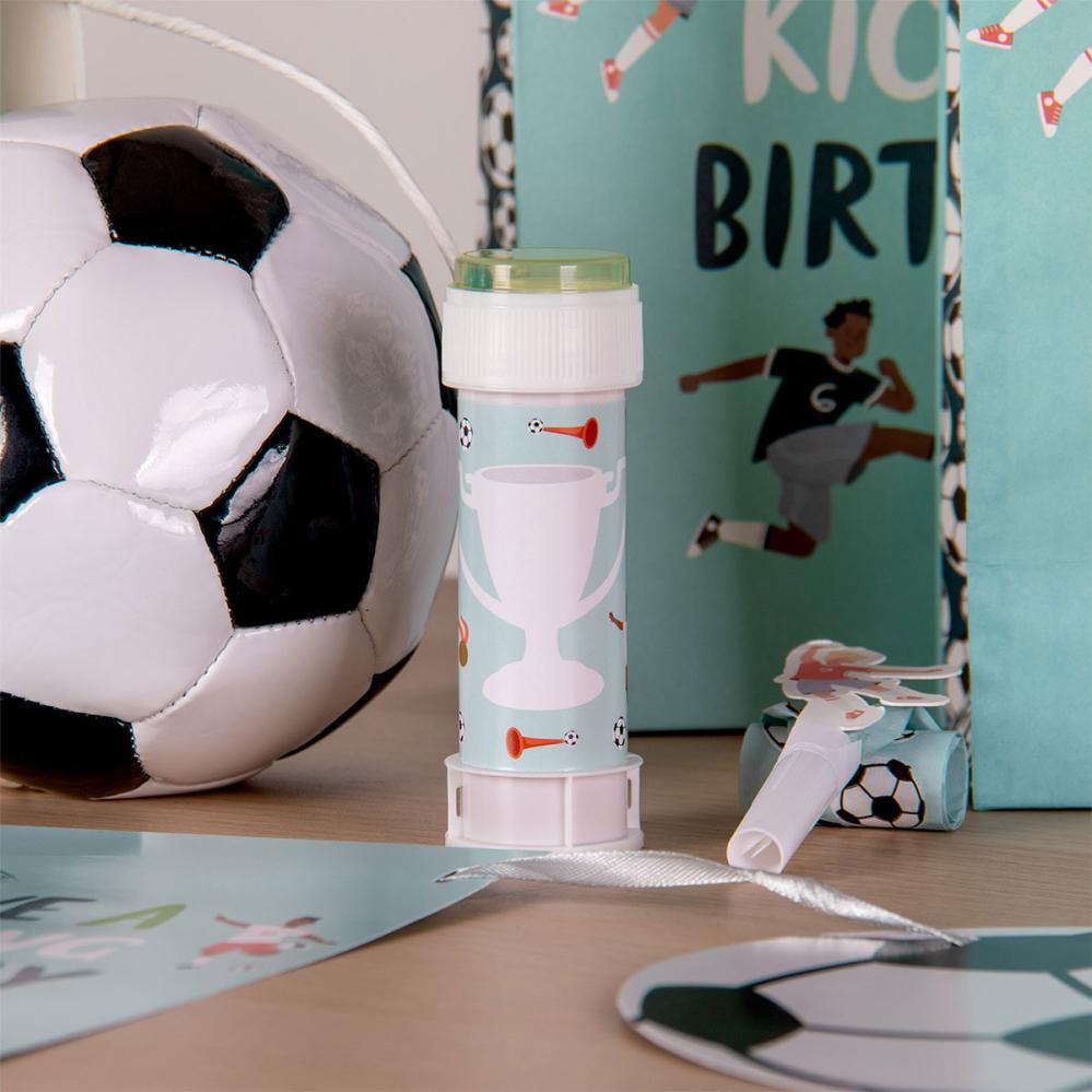 Gör barnens fotbollstema-kalas ännu festligare med dessa såpbubblor som barnkalastillbehör. Sex stickers med färgglada fotbollsmotiv blir lekfulla och personliga kalastillbehör.