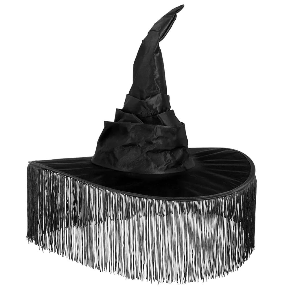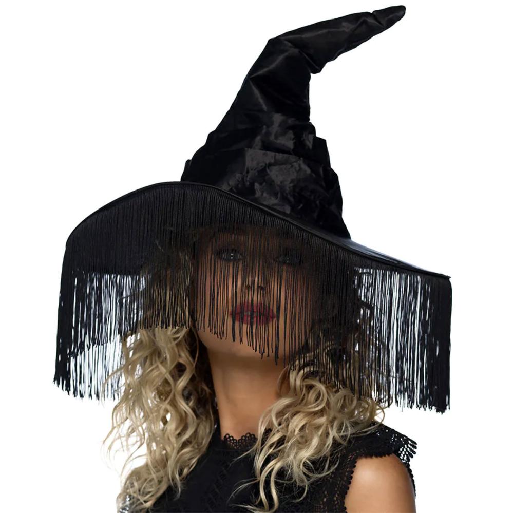 Fullända din Halloween-utklädnad med denna häxhatt i vuxenstorlek, perfekt som häxhatt till maskeraden. De svarta fransarna och den stadiga formen gör den till ett stiligt och stabilt tillbehör på festen.