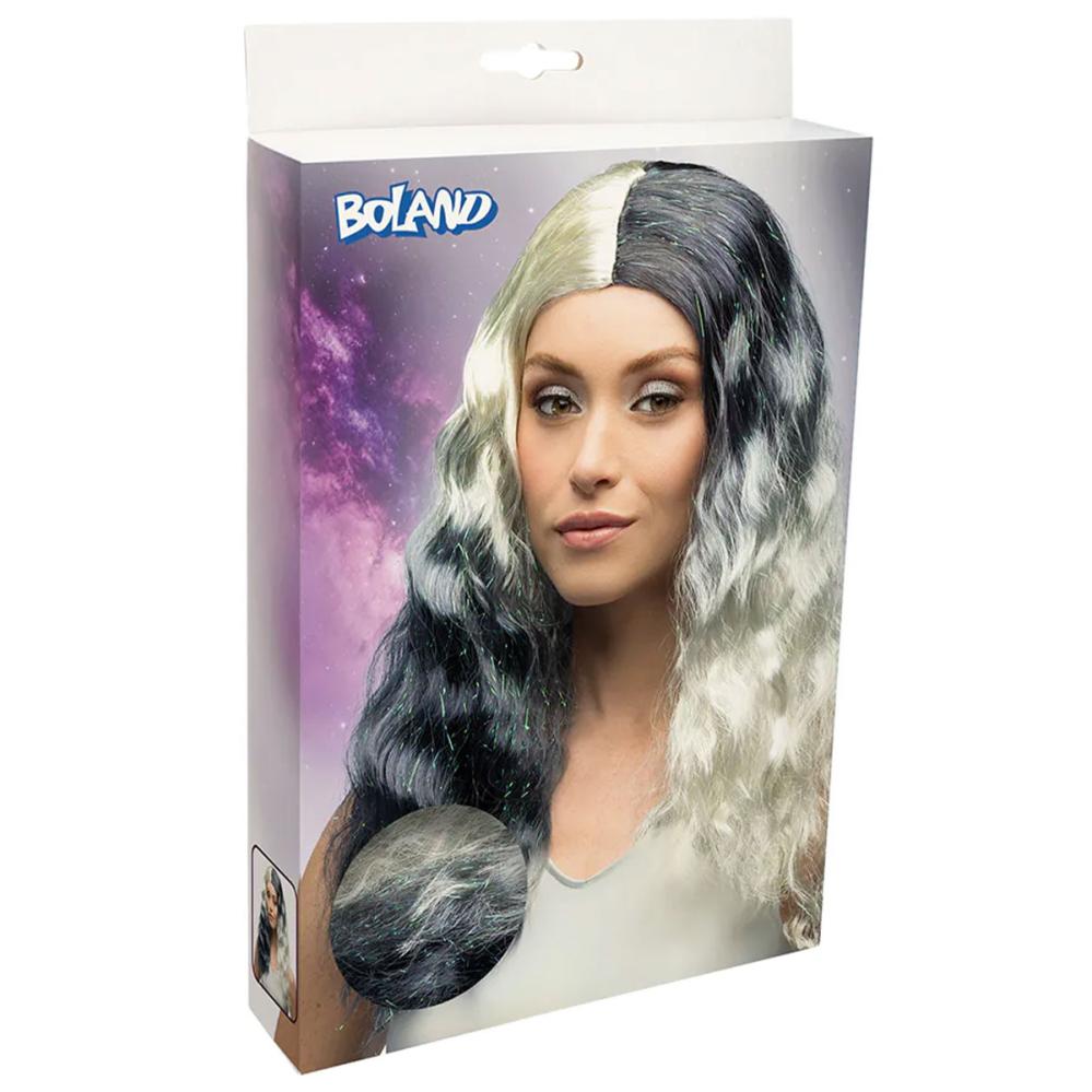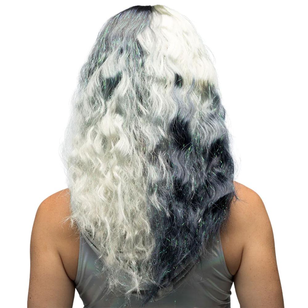 Stick ut på en Disney-temafest med denna svartvita peruk som för tankarna till Cruella de Vil. Detta är en perfekt Halloween-peruk med glamorösa glitterstrimmor som gör varje rörelse magiskt skimrande.