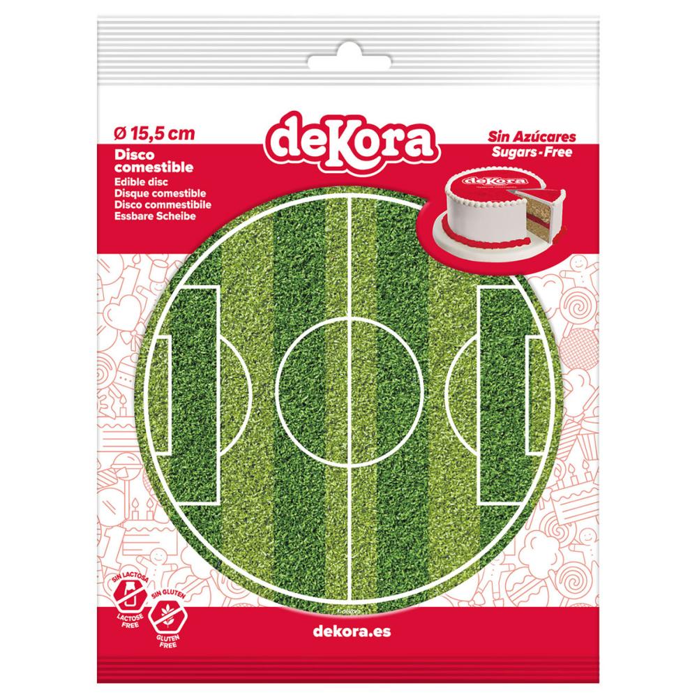 Tårtbild Fotbollsplan Liten omfattar en gluten- och mjölkfri tårtbild med motiv av en klassisk fotbollsplan. Tårtbilden är ca 16 cm stor och är klar att läggas direkt på tårtan.