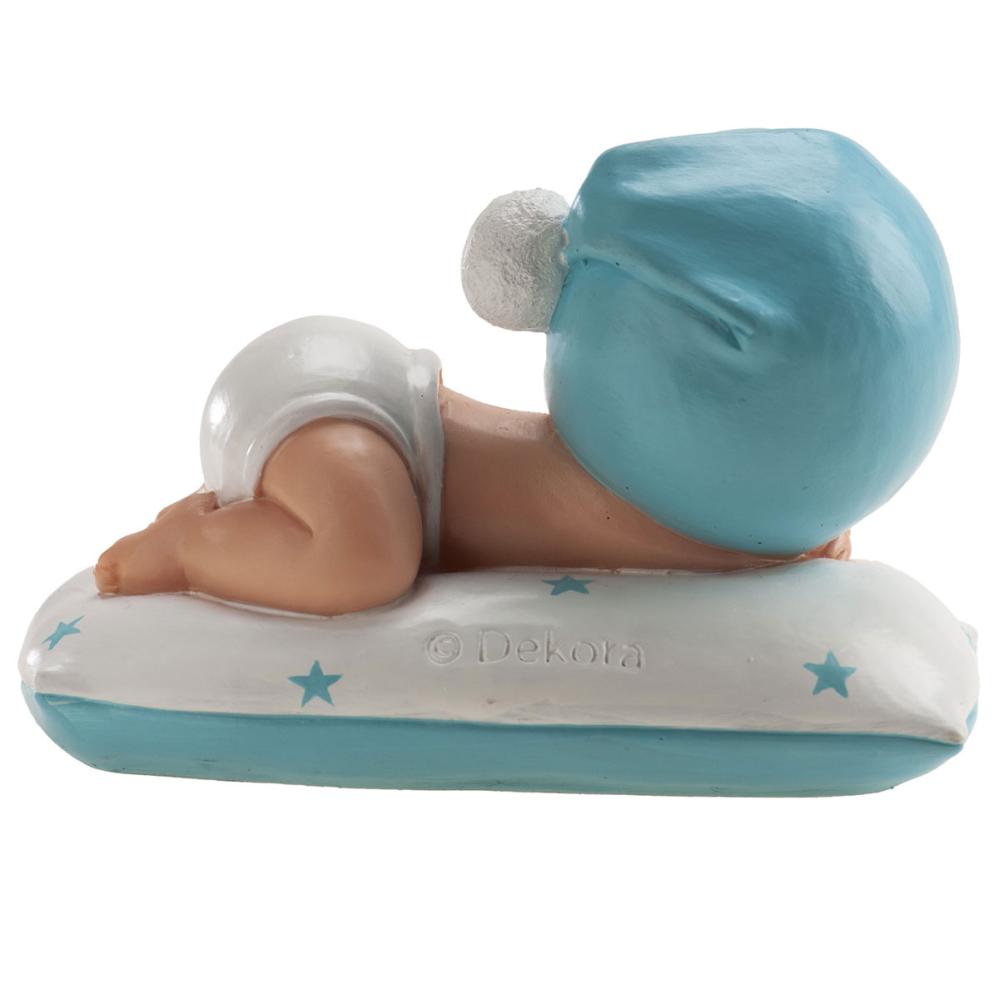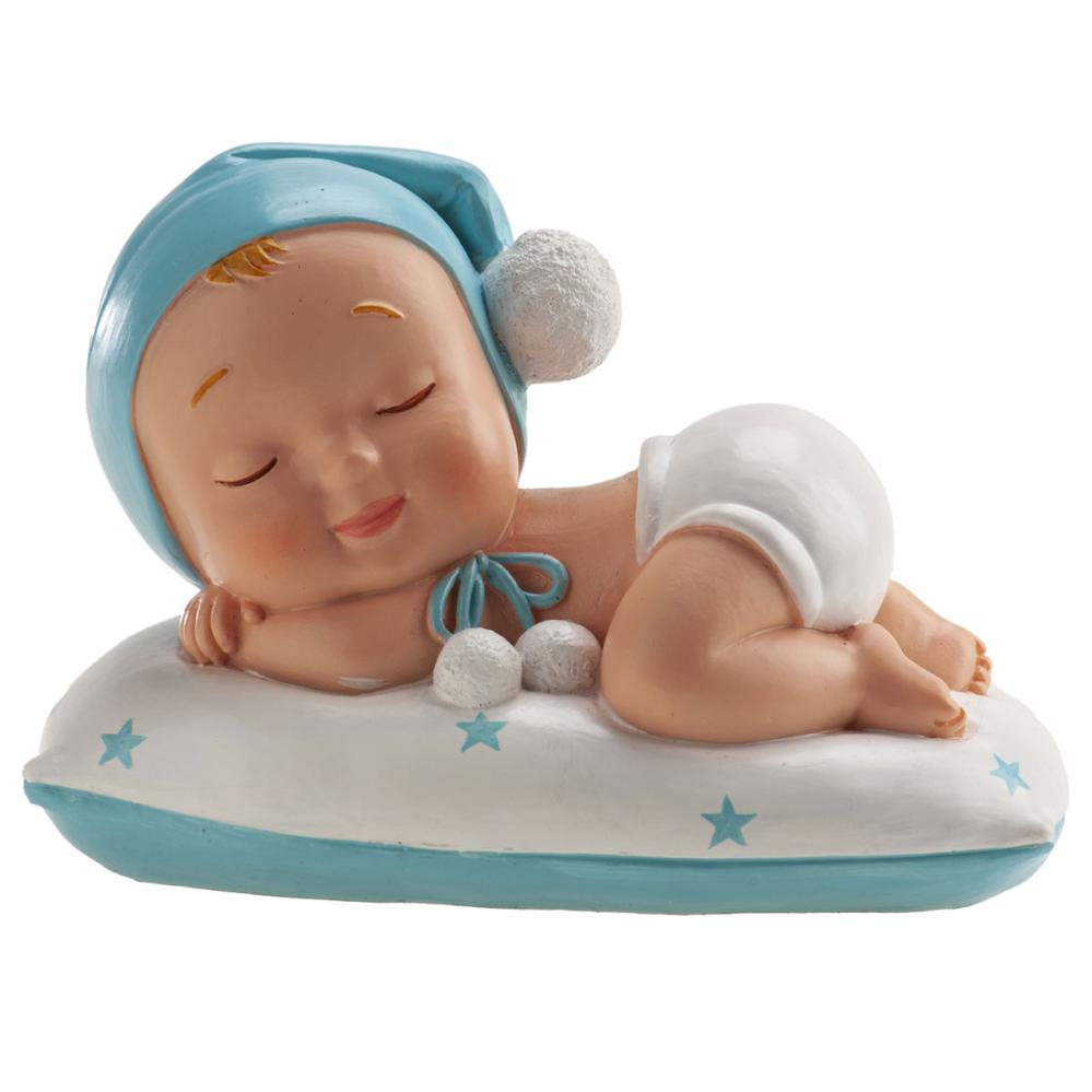 Gör doptårtan extra minnesvärd med en tårtdekoration för dop i form av en sovande pojke med ljusblå detaljer. Denna tårtfigur är perfekt för dop, en vacker dekoration som förhöjer varje doptårta.
