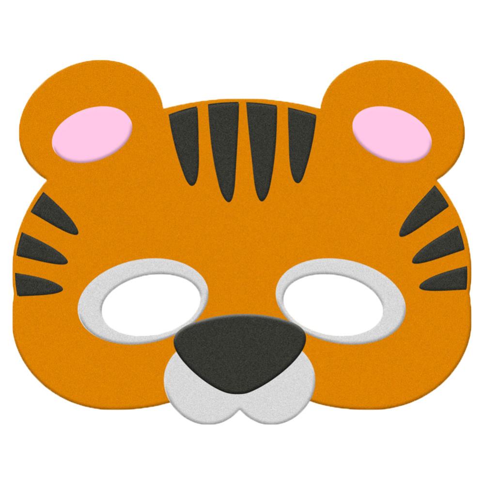 Tigermask Barn omfattar en söt tigermask för barn. Masken har hål för ögonen och hålls på plats med ett elastiskt band runt huvudet. Den är tillverkad av mjukt filtmaterial och är ca 14 cm hög samt 18 cm bred.