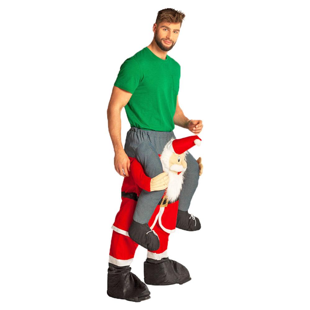Vanligtvis brukar tomten bära runt på en stor säck med julklappar men nu kan han bära runt på dig istället! En rolig tomtedräkt som får det att se ut som att tomten bär runt dig på hans axlar. Perfekt för dig som är ute efter en passande carry me dräkt till julfesten!