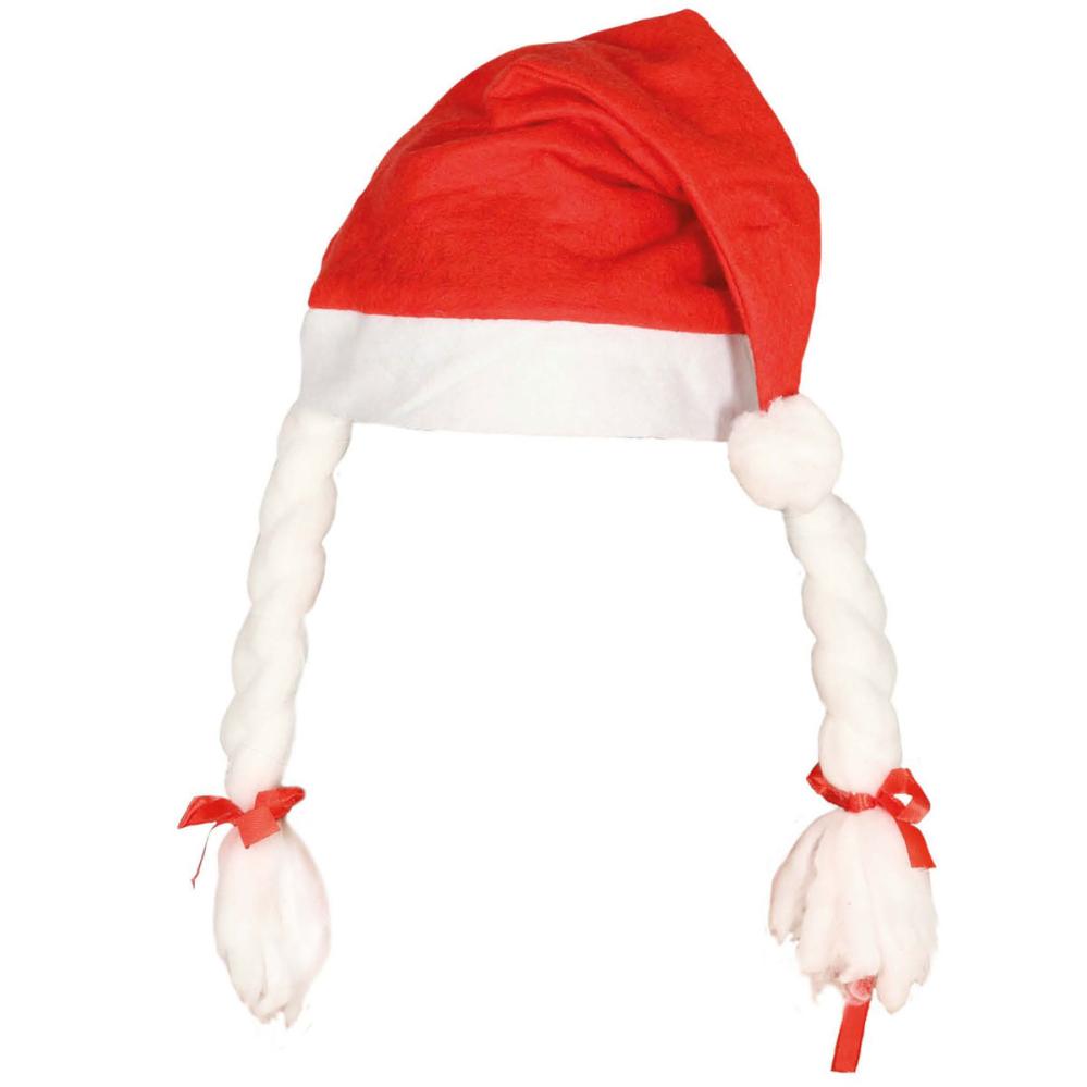 Tomteluva med Flätor Röd/Vit omfattar en klassisk röd och vit tomteluva med två fastsydda vita flätor, dekorerade med små röda rosetter. En perfekt accessoar för julfirandet.