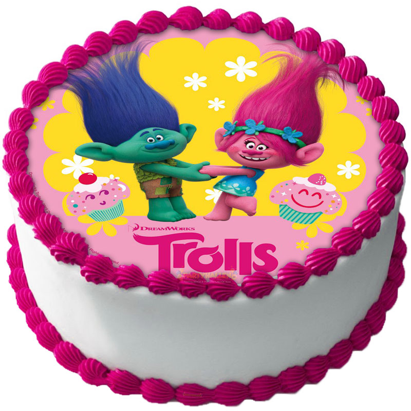 Det är alltid roligt att fylla kalaset med lite smådetaljer här och där. Denna Trolls tårtbild av sockerpasta tillsätter en god smak till tårtan och bidrar dessutom med en förhöjd stämning kring evenemanget.