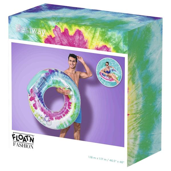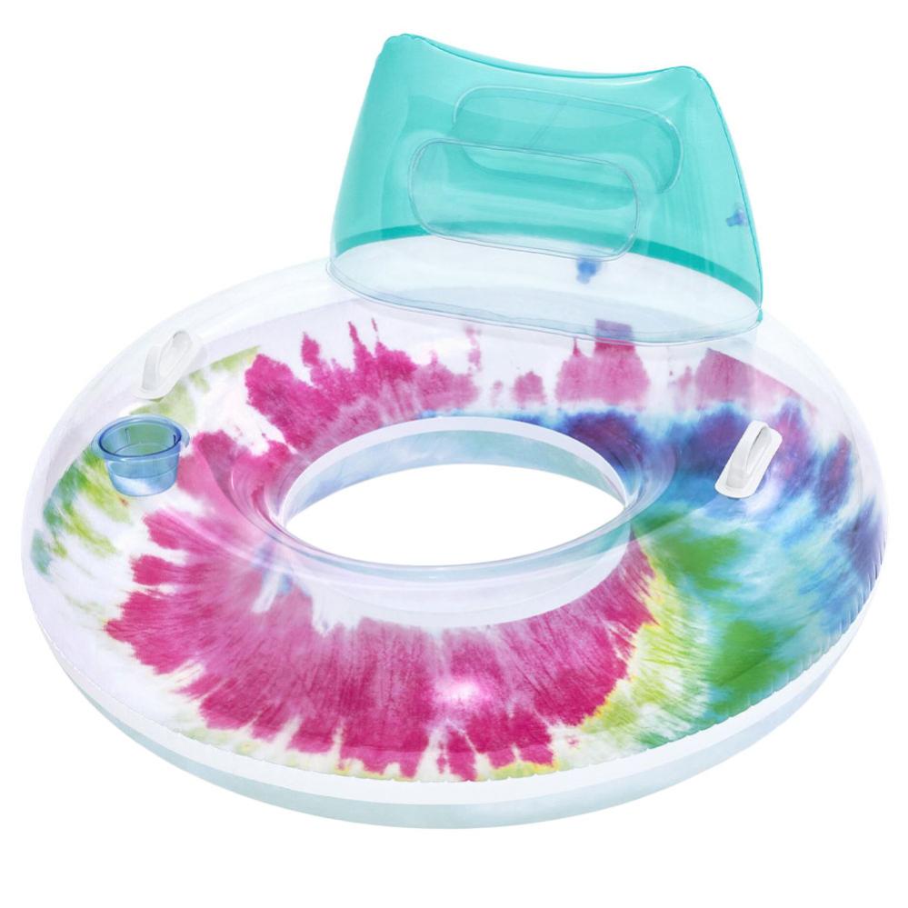 Koppla av i poolen med denna färgglada uppblåsbara badring för vuxna, komplett med handtag för säkerhet och ett skönt nackstöd. En mångsidig uppblåsbar flytleksak som även inkluderar en praktisk mugghållare. Perfekt som badleksak för vuxna.