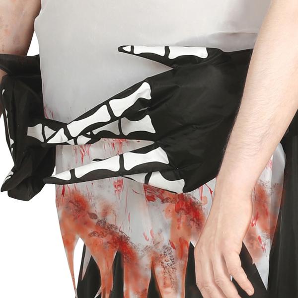 Uppblåsbar Grim Reaper med Halv Kropp Dräkt omfattar en maskeraddräkt som består av en uppblåsbar svart grim reaper som bär på din vita överkropp. Dräkten hålls uppblåst med en inbyggd fläkt som drivs av fyra stycken AA-batterier (ingår ej) och räcker i ca fyra timmar.
