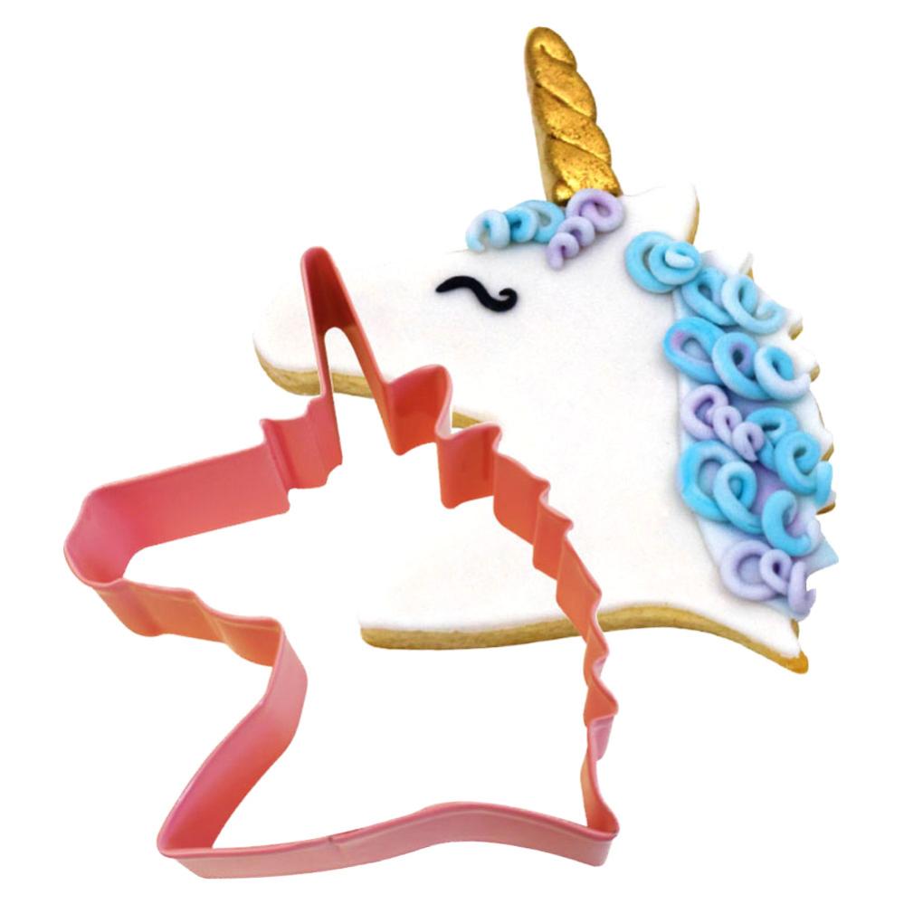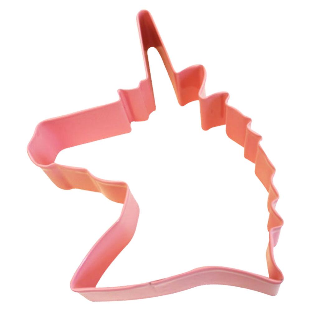 Utstickare Enhörning omfattaren rosa kakform som föreställer ett enhörningshuvud. Kakformen är gjord av metall och är ca 12 cm hög samt 9 cm bred. Passar till kakdeg, sockerpasta, marsipan m.m.