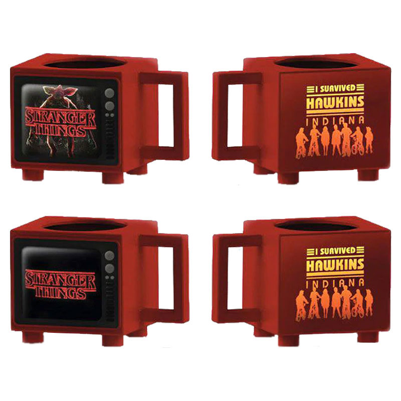 Den ultimata retro-merchen i Stranger Things stil är här, en mugg formad som en 80-tals TV med ett coolt värmeskiftande motiv som avslöjar den hemska Demogorgon. En häftig present att ge som gåva till ett Stranger Things fan.