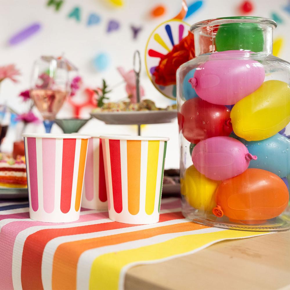 Här gömmer sig 50 härligt spralliga ballonger för sommarens blötaste skrattfest. Dessa vattenballonger bjuder på lekfulla dueller på gården och färgstänk som får hela gänget att tjoa. De passar för lek i trädgård eller park när solen lockar.