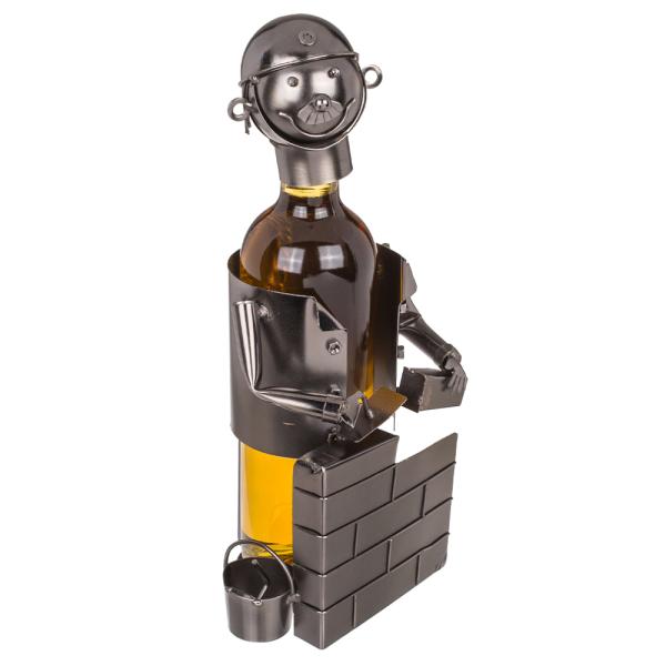 Vin kan förvaras och visas upp på ett annorlunda och roligt vis med detta vinställ av metall som föreställer en murare. En flaskhållare i mörk grå färg passar in i de allra flesta hem och utgör därmed en alldeles utmärkt present eller julklapp till den som behöver en dekorativ vinhållare.