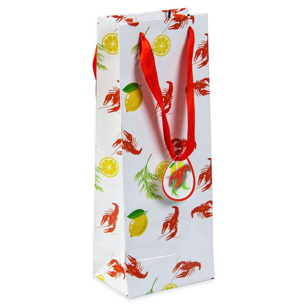 Är du bortbjuden på kräftskiva och vill ta med en present så kan en flaska vin bli en helt perfekt gåva att ge till festvärden! Med denna snygga kräftskiva vinpåse kan du även göra din vin-present riktigt snygg, lägg bara ner flaskan i påsen och piffa till det med lite silkespapper så kommer din kräftskiva-present se riktigt proffsig ut. Super fin flaskpåse som gör din kräft-gåva en hel del mycket festligare på ett riktigt snabbt och enkelt sätt.