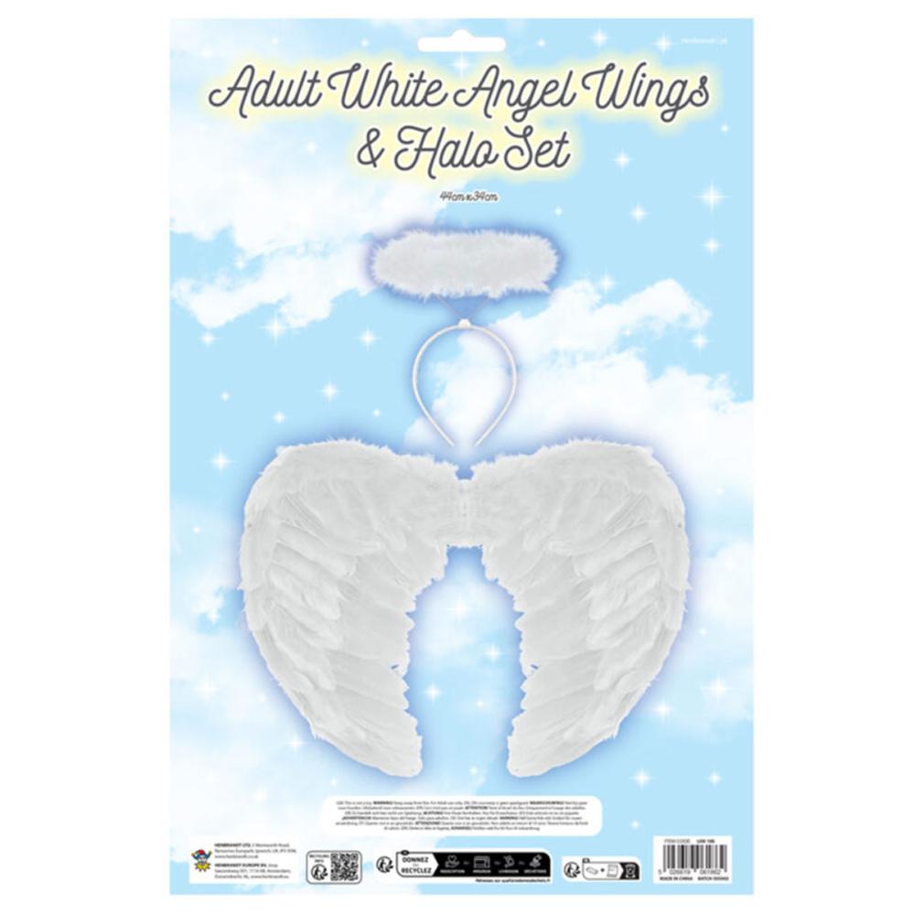 Förvandla dig till en sagolik varelse under Halloween med dessa vita änglavingar. De är perfekta för änglamaskerad eller som Halloweenutklädnad, kompletta med en fluffig gloria för extra glans.