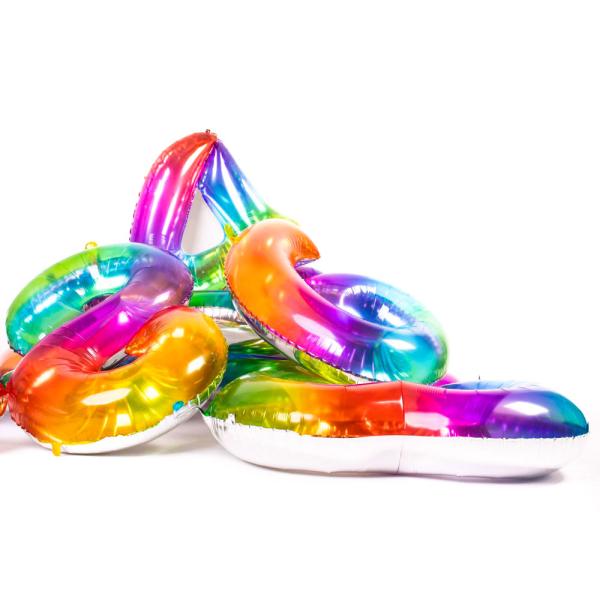 Med läckra ballonger i regnbågsfärger blir det inte alls särskilt svårt att få till ett lyckat firande! Med denna flerfärgade sifferballong kan du pryda firandet med exempelvis födelsedagsbarnets ålder, ett årtal eller liknande som passar just din fest. Riktigt fina folie-ballonger i form av siffror med silvrig baksida och lätt transparent framsida i regnbågsfärger som passar alldeles utmärkt till flera olika typer av firanden.